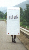 There is no point in this. Just a guy, in a giant milk carton walking down the highway. That's it. |